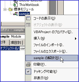 また、モジュールを削除したい場合は、削除したいモジュールの上で右クリックし、「(モジュール名)の解放」を選択します。