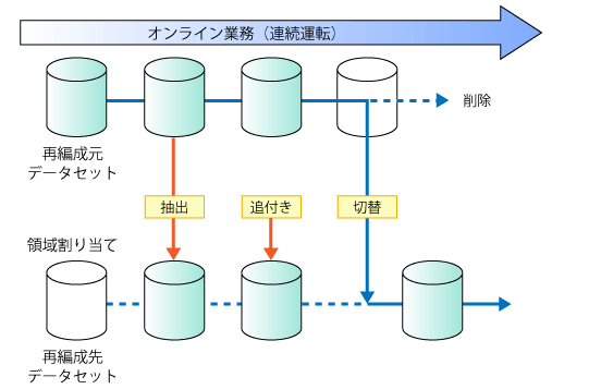 データベースの再編成とは、データの内容を保ったまま、データベースの記憶編成を変更することです。